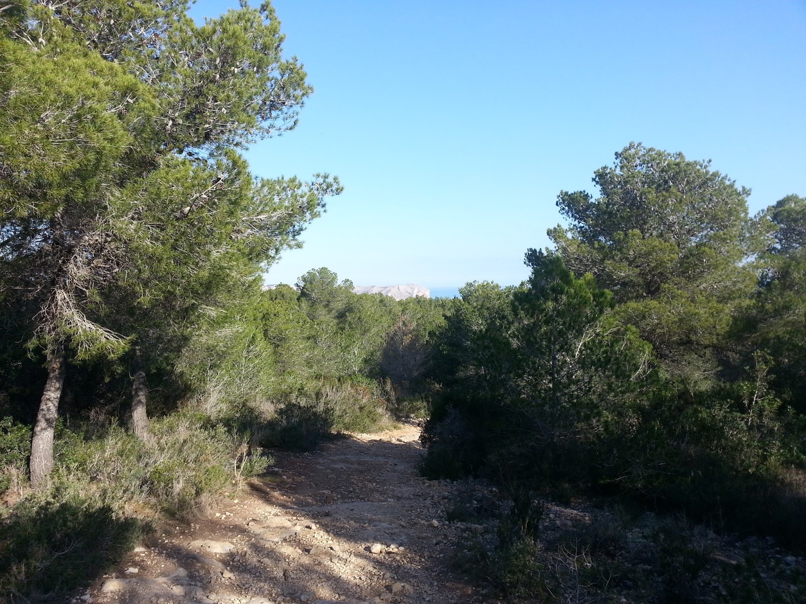 Anirem trobant diversos encreuaments en aquest tram, però seguint les marques no hi ha pèrdua. Quan arribem a la zona més al nord tindrem bones vistes del Montgó i del cap de Sant Antoni